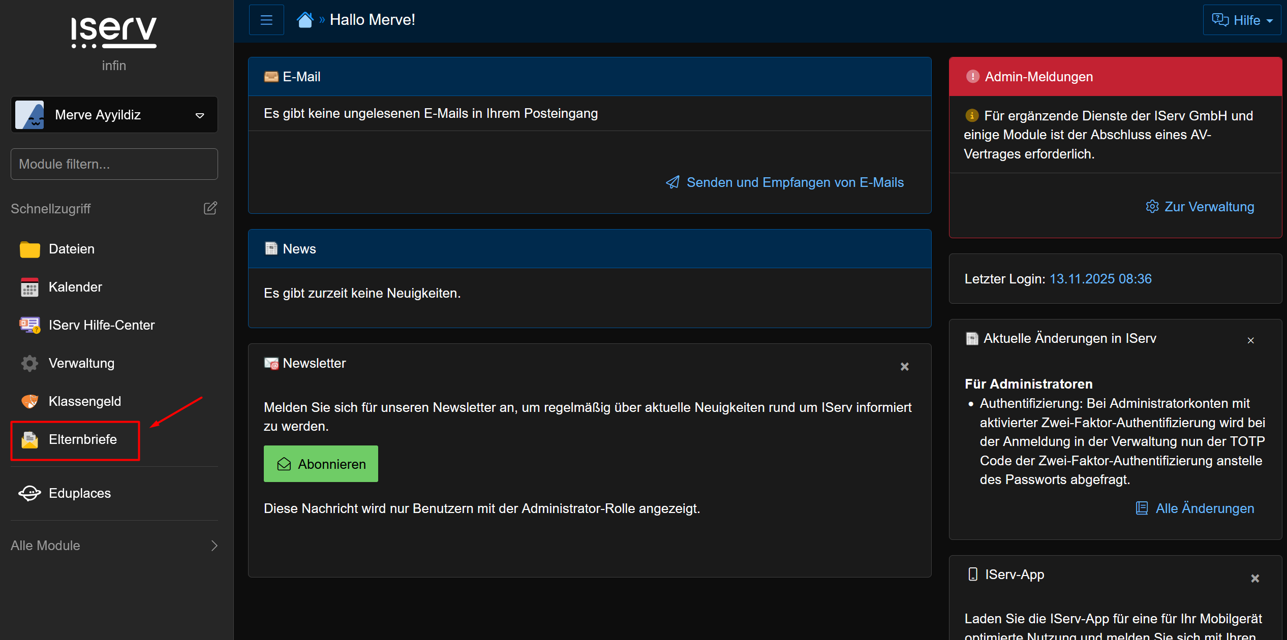 Elternbriefe in IServ